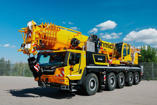 Schmidbauer begrüßt ein neues Flagschiff im Fuhrpark: ein LTM 1110-5.2 für den Standort in Gräfelfing (Hauptverwaltung).