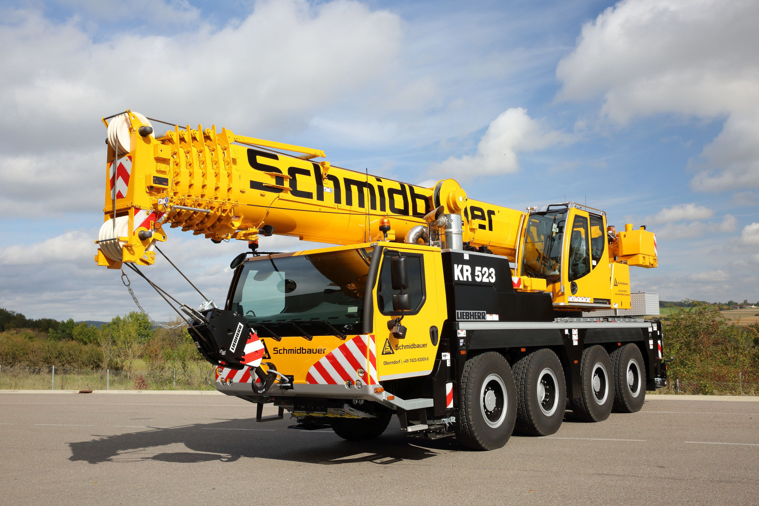 Seit Oktober 2020 ist ein weiteres Modell des LTM 1070-4.2 Bestandteil des Fuhrparks bei Schmidbauer, dieses Mal in Oberndorf. Er ist ausgestattet mit modernster Technik: ECOmode und ECOdrive sorgen für einen reduzierten Kraftstoffverbrauch und verringern den Lärm. Das bewährte Ein-Zylinder-Teleskopiersystem TELEMATIK garantiert einen komfortablen und automatischen Ausschub der Teleskope auf die gewünschten Längen. Dazu gewährleistet VarioBase® ein sicheres Arbeiten in beengten Arbeitsbereichen. Die zulässigen Traglasten werden individuell und genau für die jeweilige Situation berechnet. Dadurch ist ein sicheres Arbeiten bei einer beliebigen, praxisgerechten Abstützbasis möglich. Die aktive, geschwindigkeitsabhängige Hinterachslenkung macht den Kran geländegängig und wendig. Außerdem hat dieser Kran eine zweite Winde, mit der man große Teile in der Luft drehen kann. Ebenso kann der 4-Achser den Großteil seines Ballasts bei der Straßenfahrt mitführen. So ist er auf Baustellen sofort einsatzbereit. Der kleinste Liebherr 4-Achser steckt somit voller Potential.