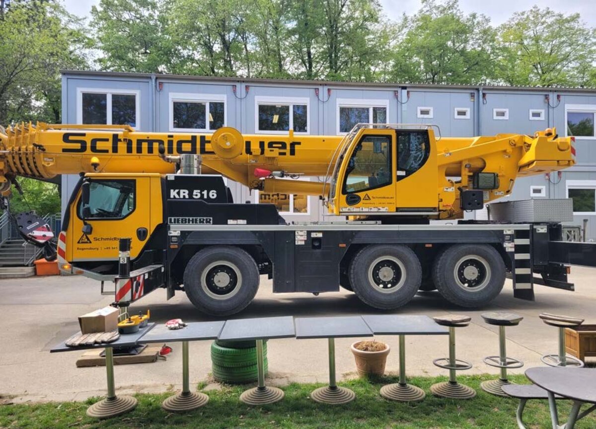 Mit im Gepäck hatten sie nicht nur Werkzeuge, kleine Bauhelme und Sicherheitswesten für Kinder, sondern auch einen LTM 1060 Kran.
