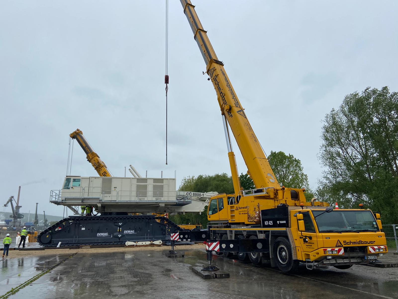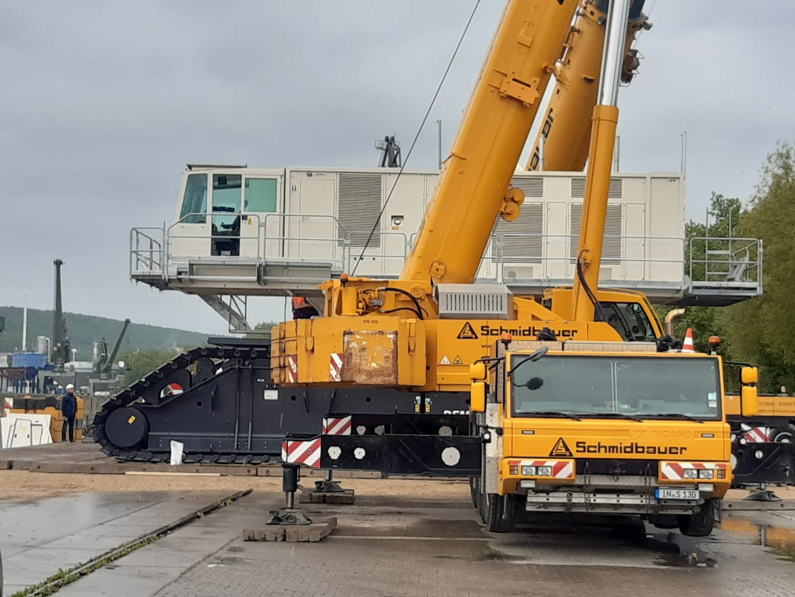 Die letzten Vorbereitungen für ein spektakuläres Projekt laufen auf Hochtouren! Anfang Juni erwarten wir zwei riesige Reaktoren im Hafen Kelheim, die ihre Reise aus Italien über das Mittelmeer und den Atlantik nach Rotterdam über den Rhein angetreten hatten und nun über den Main-Donau-Kanal auf dem Weg sind. Im Hafen Kelheim werden sie von einer gewaltigen CC8800-1 gehoben, die gerade noch aufgebaut wird: 700 Tonnen bei 26 Metern Ausladung – vielleicht der bislang schwerste Einzelhub Deutschlands. Dann werden sie auf unseren SPMTs in einem rekordverdächtigen Einsatz zur Raffinerie BAYERNOIL transportiert – es wird spannend!