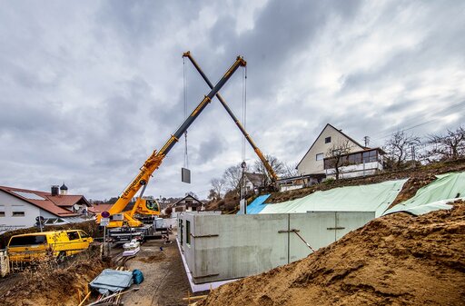 Schmidbauer setzt einen Fertigkeller auf engem Raum.