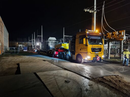 Verlagerung eines 67-Tonnen-Transformators von Linz Siemens nach Regensburg Bayernwerk