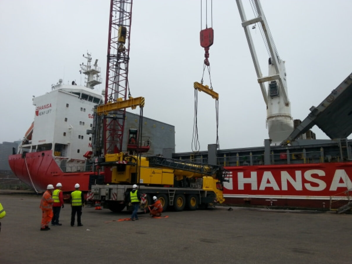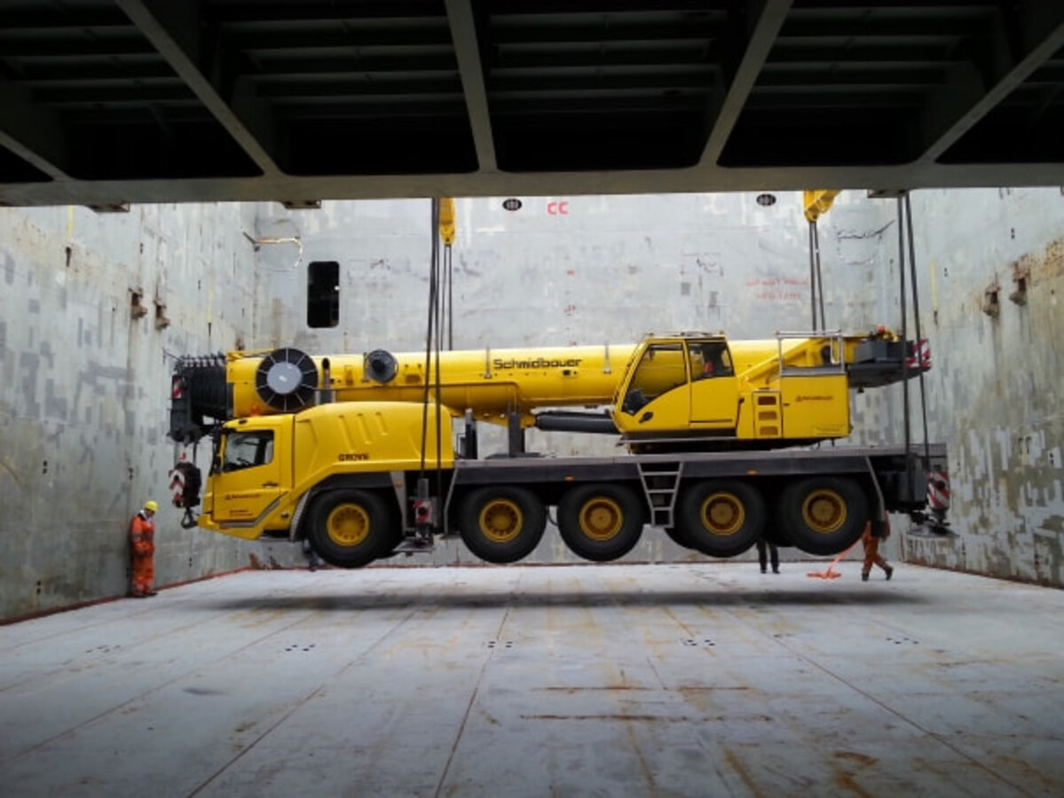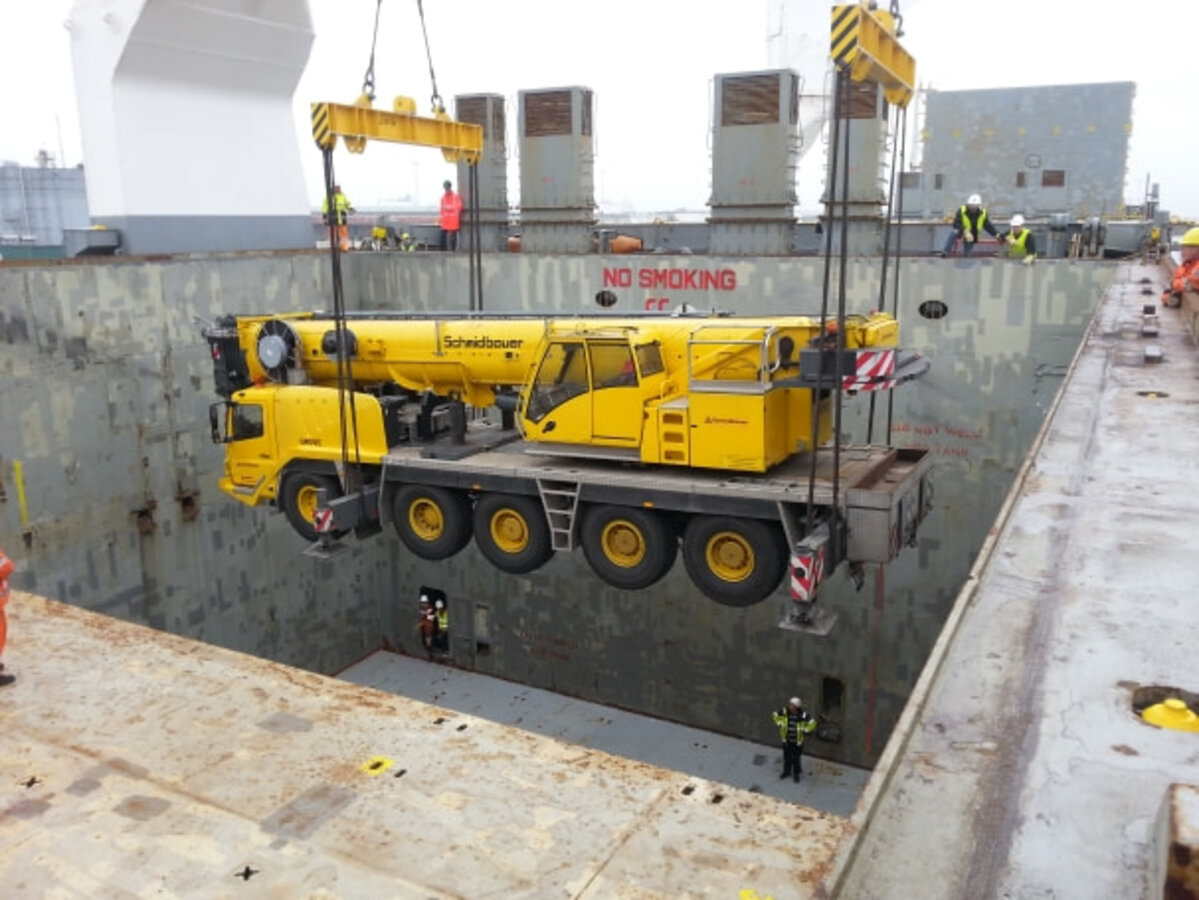 Mitte Oktober erfolgte kurzfristig eine Beauftragung von Byron Marine auf den Falklandinseln für einen 80 t- und einen 100 t-Teleskopkran. Die Krane inkl. Anschlagmittel und Ersatzteile dienen zur Unterstützung von On- und Offshore- Logistikarbeiten, die von zwei großen Konzernen im Rahmen von Voruntersuchungen zur Öl- und Gasförderung durchgeführt werden. Die Verladung der Krane in Amsterdam war bereits für Ende Oktober geplant. Nun war Eile geboten und das Schmidbauer-Team konnte seine ganze Professionalität auffahren: