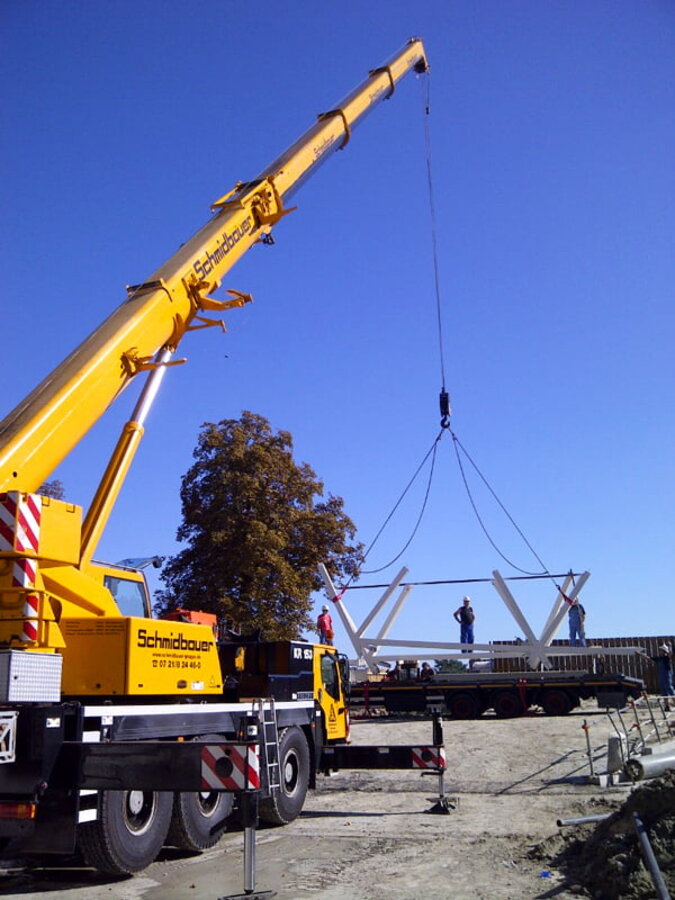 Gehoben werden dabei Stahlteile mit Einzelgewichten zwischen 2,5 und 8,0 Tonnen, die Ausladung beträgt bis zu 24 Meter.