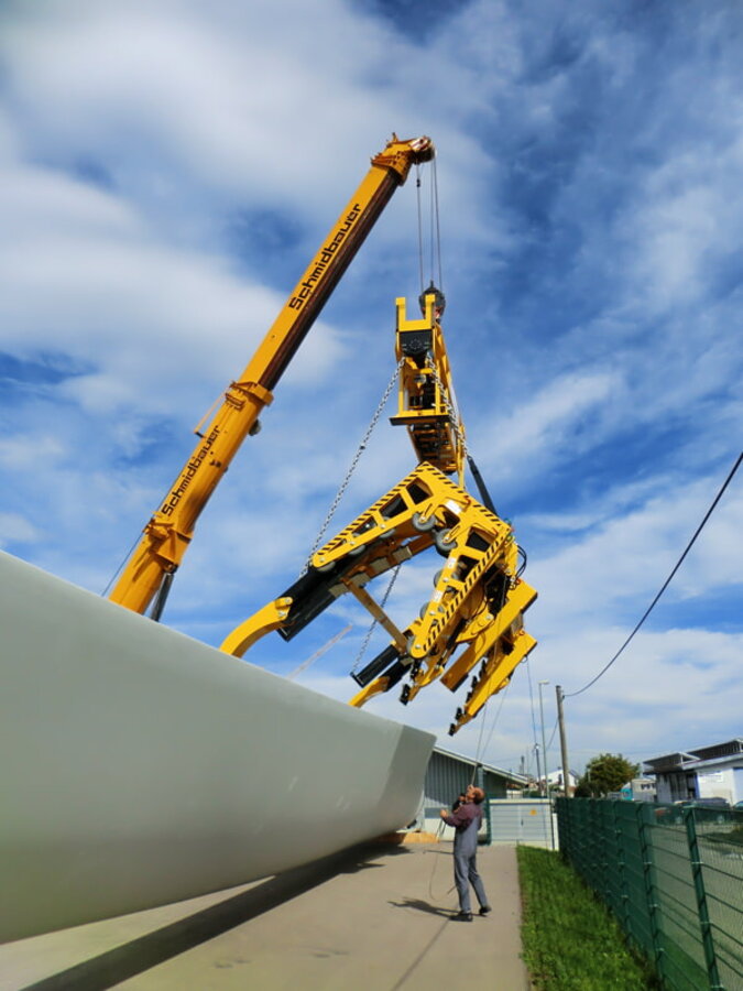 Die Traverse kann Rotorblätter mit einem Gewicht von maximal 11,5 Tonnen anheben.