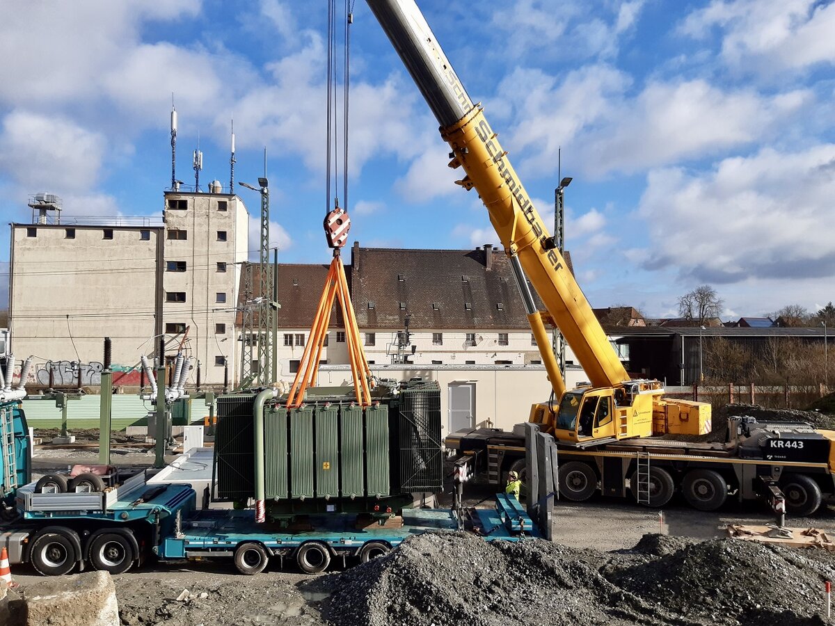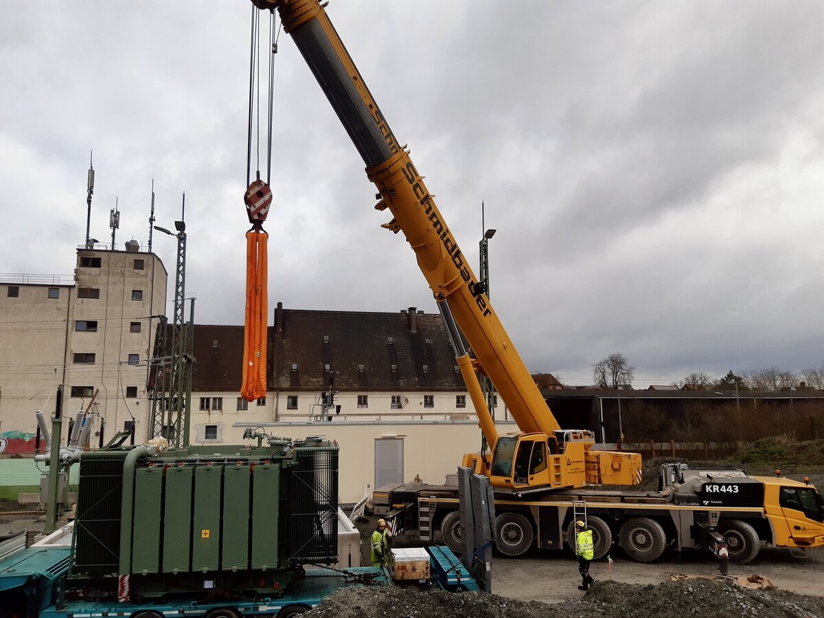 Im Februar führte unser Team aus der Niederlassung Nürnberg einen Einsatz am Umspannwerk der Deutschen Bahn durch. Der Hauptauftrag bestand darin, einen 51 Tonnen schweren Transformator vom Auflieger zu heben.