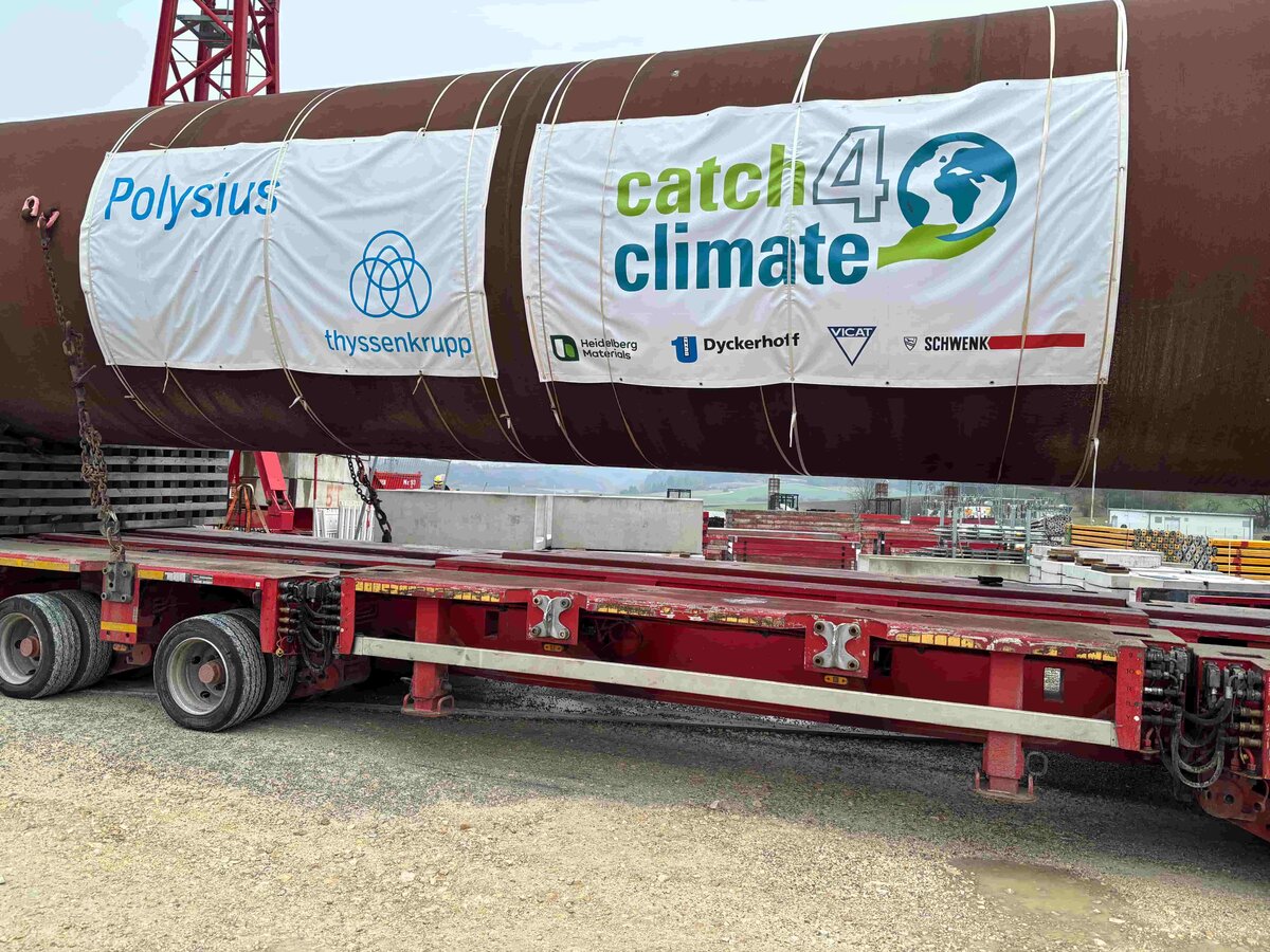 Denn es handelt sich dabei um ein Forschungsprojekt zur CO2-Abscheidung bei der Zementherstellung, das die vier Zementhersteller Dyckerhoff, Heidelberg Materials, SCHWENK Zement und Vicat unter der Bezeichnung „catch4climate“ ins Leben gerufen haben. Mittels eines innovativen Verfahrens sollen in der Versuchsanlage die ohnehin hohen CO2-Emissionen auf rund 90 Prozent der entstehenden Abgase erhöht und dann möglichst umfassend abgeschieden werden. So können unverzichtbare Produkte wie Düngemittel, Treibstoffe oder Kunststoffe, die bislang auf Basis von fossilen Kohlenstoffträgern hergestellt werden, in Zukunft mit diesem gespeicherten CO2 klimaneutral produziert werden. Und das bei der Zementherstellung anfallende CO2 geht nicht ungenutzt in die Atmosphäre.