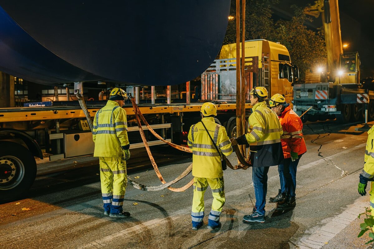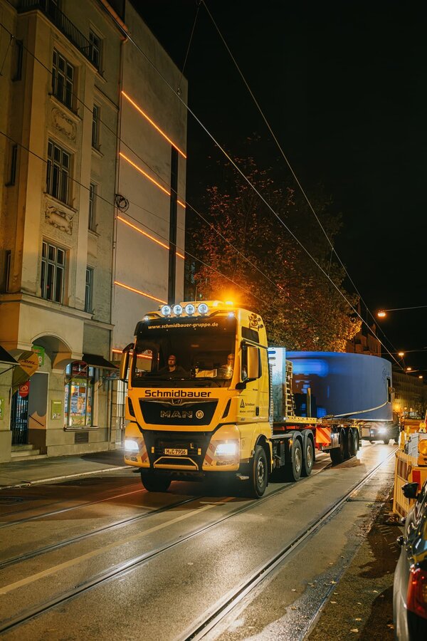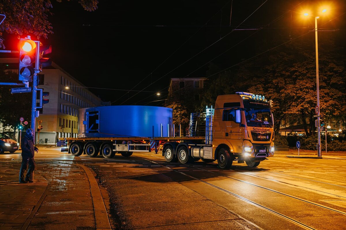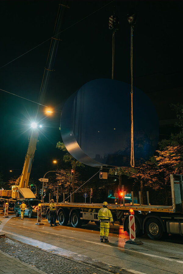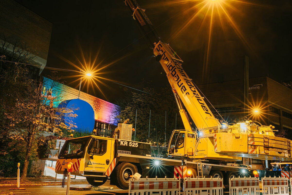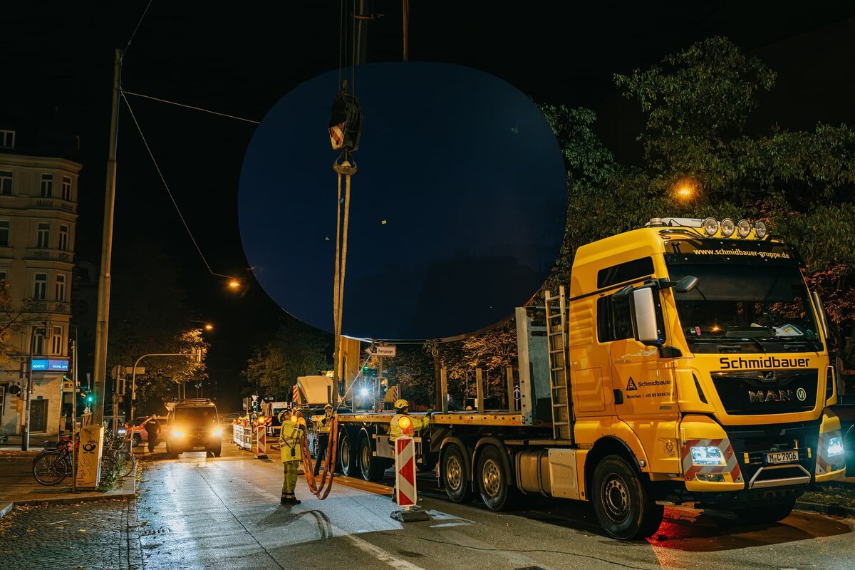 Aufgrund der anstehenden, umfangreichen Sanierungsmaßnahmen des Gebäudes wurde das Kunstwerk vorübergehend an einen sichereren Standort transportiert. Ganze drei Jahre nahm die Planung des Umzugs in Anspruch. Vom 04. bis zum 06. November 2023 war es dann soweit: Das imposante Werk wurde von der Schmidbauer GmbH & Co. KG unter Leitung von Maik Harting am alten Gasteig in München gehoben und anschließend an seinen neuen Standort transportiert.