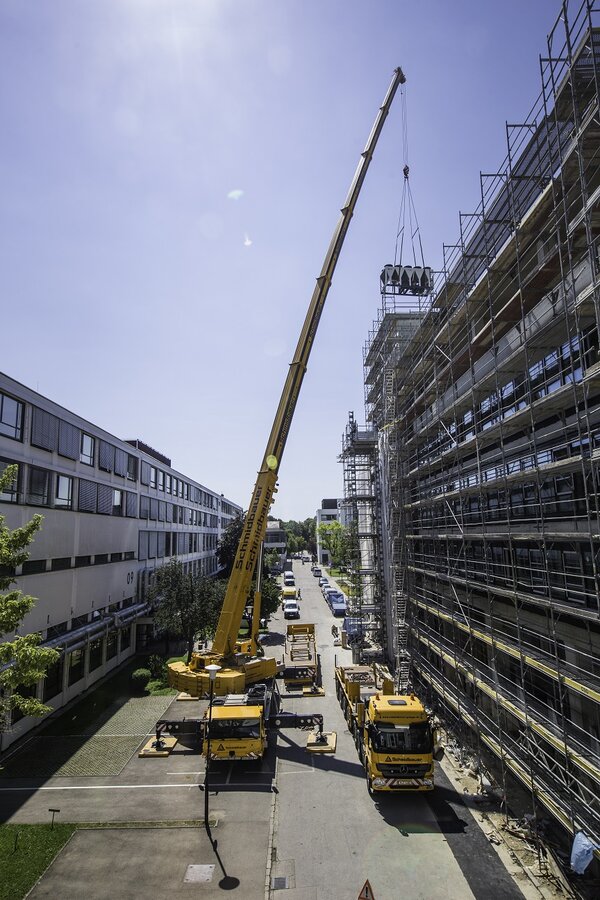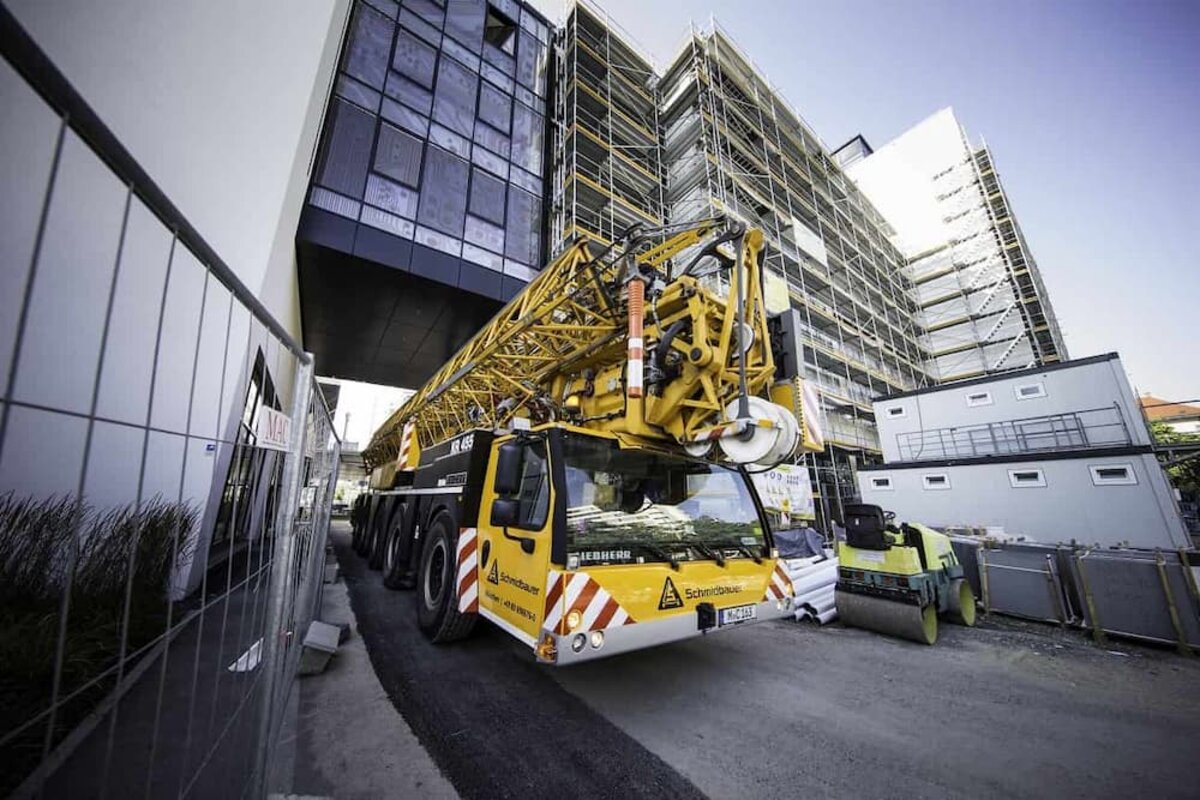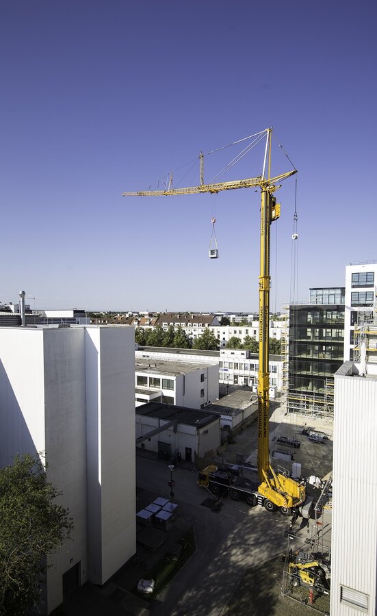 Unter beengten Platzverhältnissen waren am 28.07.20 zwei unserer Krane im Einsatz an der „neuen balan“ im Münchner Osten. Neben dem kompakten Mobilkran MK 140 von Liebherr unterstützte der ATF 220 von Tadano die Bauarbeiten an den Gebäudekomplexen, die zukünftig moderne Büros beherbergen werden. In der Grenzzone zwischen den Stadtteilen Haidhausen, Obergiesing und Ramersdorf gelegen, wurde bei der Errichtung der „neuen balan“ nach dem Konzept der bestandsorientierten Nutzung vorgegangen: vorhandene Gebäude wurden grundsaniert und umgenutzt, in Anknüpfung an Bestehendes. Bewohnt wird die Fläche bereits heute von einer Mischung aus Firmen u.a. aus den Bereichen IT, Börse, Werbung, Bekleidung, Medien, Kommunikation, Gastronomie etc.