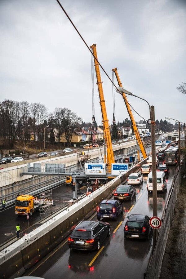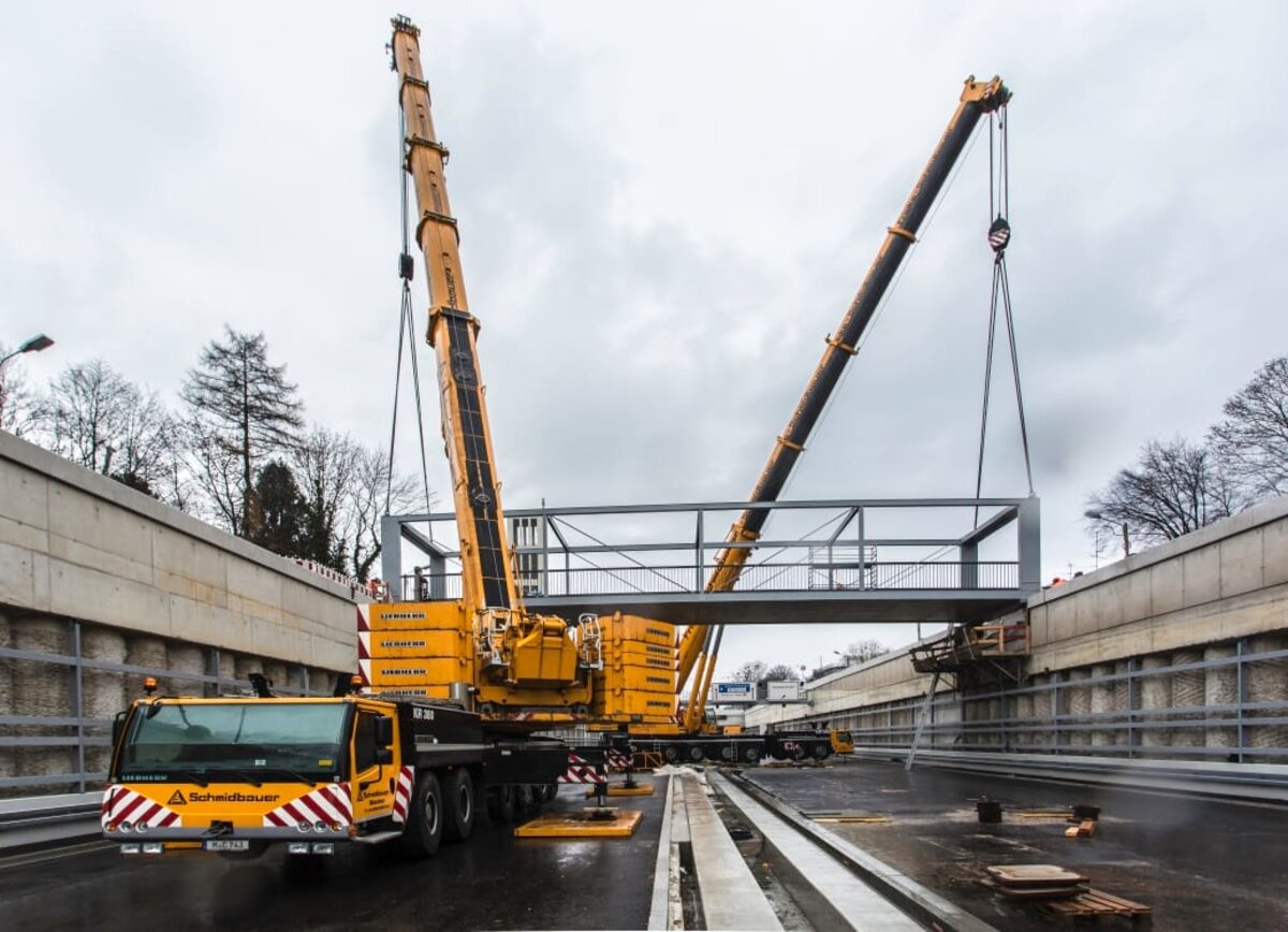 Es ist Münchens größte Baustelle: Seit 2009 wird am Mega-Projekt Luise-Kiesselbach-Platz gearbeitet. Auch Schmidbauer hat seinen Teil dazu beigetragen – unter anderem beim Einheben einer Fuß- und Radwegbrücke Grabbeweg über die Heckenstaller Straße, Mittlerer Ring.