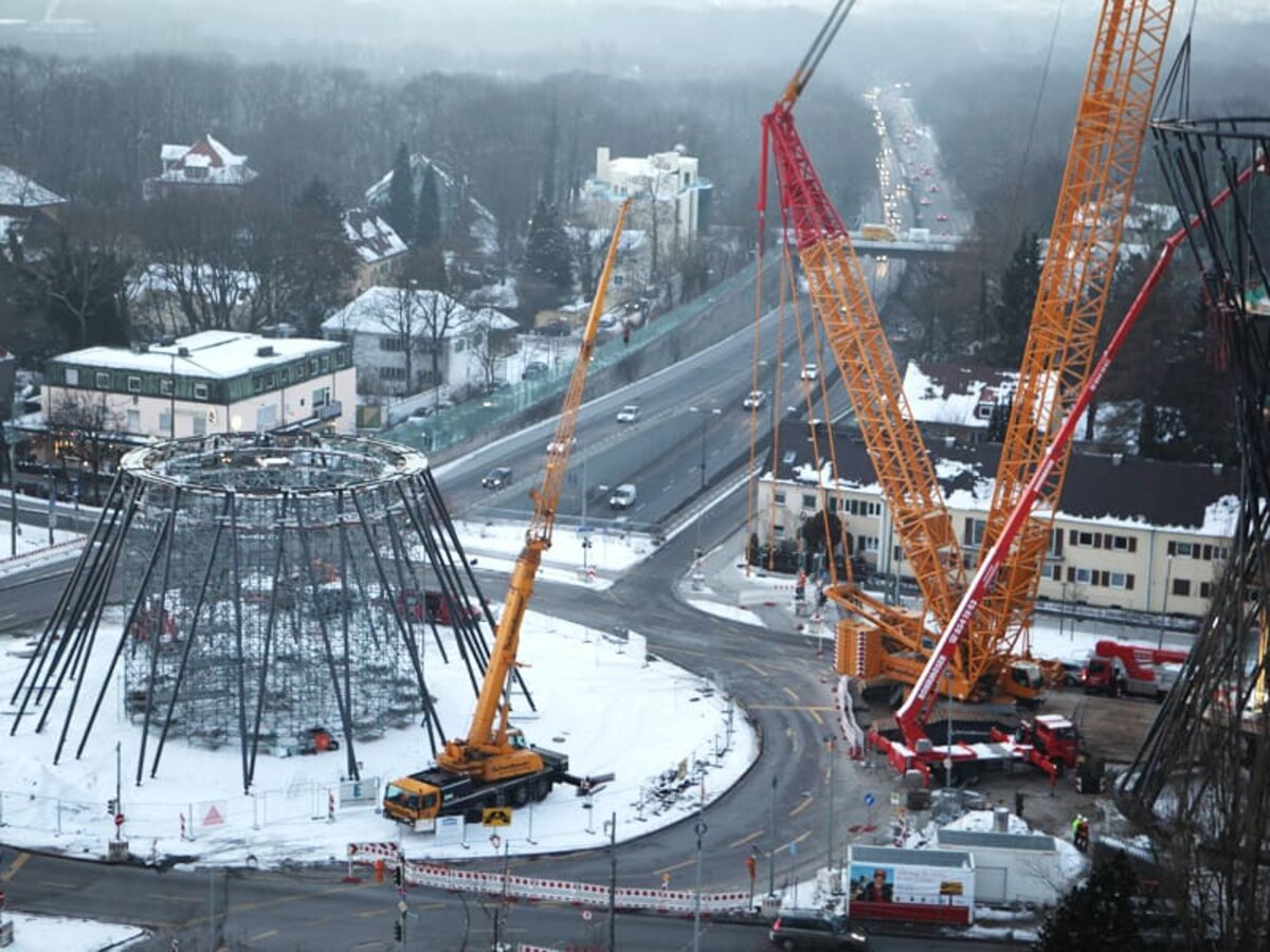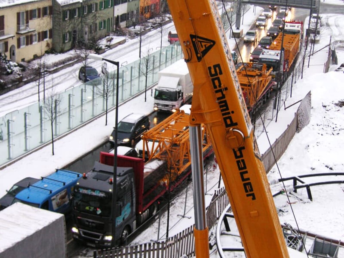 Aufgrund der Lage an einem frequentiert befahrenen Verkehrsknotenpunkt sowie des sehr beengten Kranstandplatzes war ein enormer Planungsaufwand erforderlich.