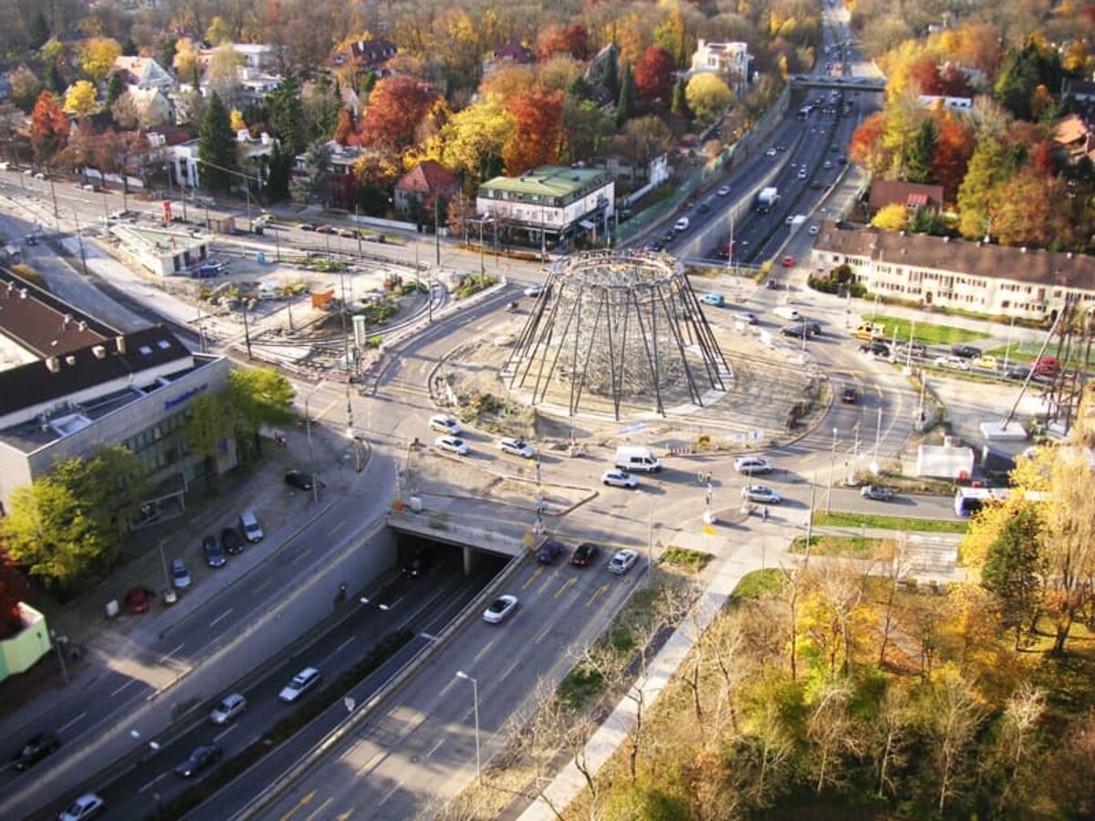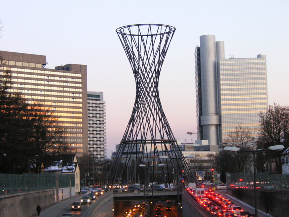 Im Rahmen des Ausbaus des Richard-Strauß-Tunnels werden etwa 0,5 Prozent der Bausumme von 320 Mio. Euro in das Projekt „Kunst am Bau“ investiert. Das Carbongeflecht ist in dieser Form weltweit einzigartig – die Werkstoffzulassung wurde eigens durch die Technische Universität München erteilt. Die Bezeichnung „Mae West“ ist der kurvenreichen US-Schauspiel-Ikone entlehnt – ein Fakt, der bei näherer Betrachtung mehr als nachvollziehbar ist. Bei einer Oberweite von nahezu 20 Metern sowie einer Taillenweite von 7,5 Metern besteht das korsettartige Oberteil aus 32 gekreuzten schwarzen Karbonrohren und mündet am Boden auf einen Umfang von 32 Metern. Nicht weniger als 128 Schrauben halten Ober- und Unterteil zusammen, wobei die Taille der Skulptur aus Gründen des Anprallschutzes sowie der Prävention von Vandalismus aus Stahlrohren besteht. Zur Verhinderung von Eisbildung sowie der Bildung von Eiszapfen ist im Abschlussring eine Heizung verbaut. Nach Fertigstellung wird eine Straßenbahnlinie unter der Skulptur hindurchgeführt.