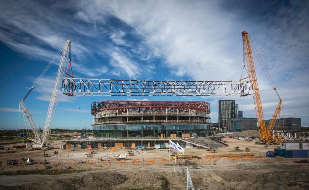 Durch langjährige Erfahrungen im Stadionbau sowie bereits durchgeführte Großprojekte in Dänemark war Schmidbauer der geeignete Partner für das Heben und Transportieren der Großkomponenten für dieses Bauprojekt.
