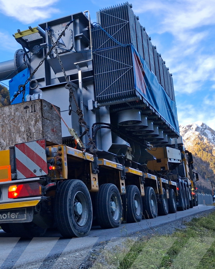 Trafotransport: 65 Tonnen Transformator zum Kraftwerk Tauernbach in Osttirol