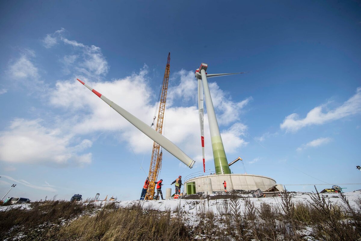 Gebaut wurde das Windrad auf der Deponie Nord-West in Freimann. Schmidbauer war für das Errichten der Anlage auf der Kuppe der ehemaligen Mülldeponie des Abfallwirtschaftsbetriebs München (AWM) beauftragt. Nachdem das Fundament aus Beton fertig gestellt wurde, ging es an die Schwerstarbeit. Mit 92 Tonnen Gewicht war der Stator, der zusammen mit dem Rotor den sogenannten Ringgenerator bildet, das schwerste Element. Die Krane vor Ort standen vor der Herausforderung, das Teil mit rund acht Metern Durchmesser sicher in die Höhe zu heben. Nach erfolgreicher Montierung der ersten vier Turmsegmente sowie des Rotors und der Nabe, waren die Krane erneut beim Hub der Rotorblätter gefragt. Die insgesamt drei je 69 Meter langen Blätter mussten auf rund 80 Meter Höhe eingehoben werden. Dank der Erfahrung und Präzisionsarbeit von Schmidbauer gelang das Vorhaben zur Zufriedenheit aller Parteien vor Ort. Mit der Errichtung des neuen „Wahrzeichens“, dessen oberster Punkt sich 687 Meter über NN befindet, hat nicht nur Schmidbauer ein weiteres Prestigeprojekt im Bereich Nachhaltigkeit erfolgreich gemeistert, auch die Stadt München ist einen Schritt weiter bei der Produktion von klimafreundlichem Strom.