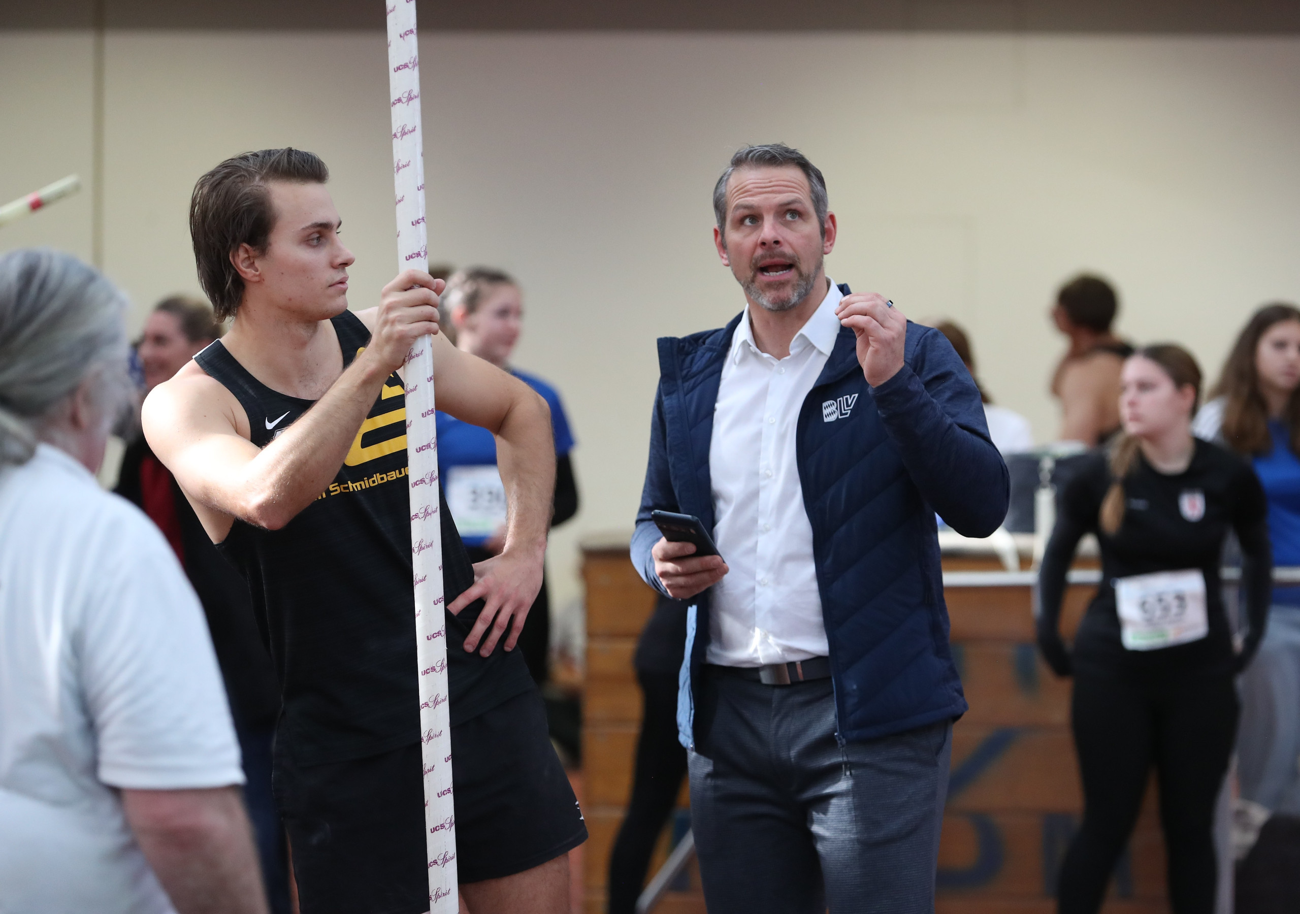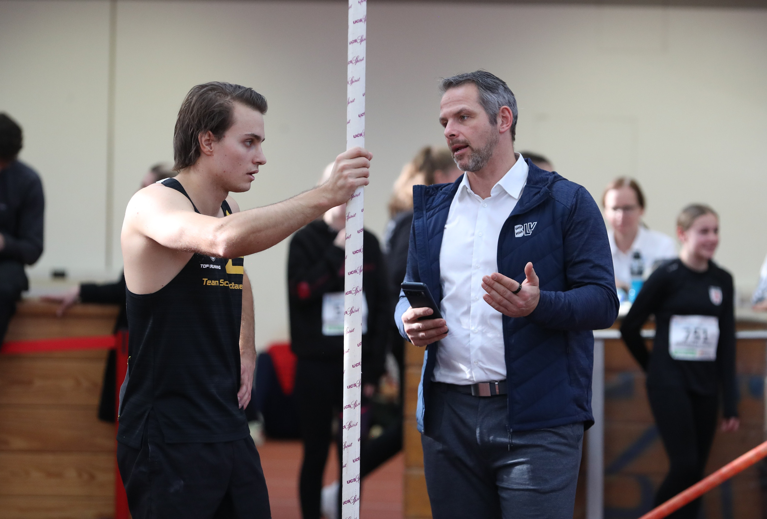 Trainer Matthias Schimmelpfennig verriet: „Seine Steigerung war nun relativ einfach im Zuge seiner guten Perspektive über die Jahre hinweg“. In diesem Winter wurden bei Marec Metzger neue Strukturen aufgebaut. Maßgeblich beteiligt war hier der einstige Chef-Bundestrainer Herbert Czingon, den Matthias Schimmelpfennig als seinen Mentor enorm hoch schätzt. Die Ideen von Czingon hatten viel Einfluss auf die weitere Entwicklung und Förderung von Metzger im Bezug auf die fixierte Belastungssteuerung und sensibilisierte Trainingswirkungsanlalysen. „Marec ist seit er bei uns ist, auch reifer geworden“, erzählte Schimmelpfennig und sprach die mittlerweile bessere Ernährung seines Athleten an, wo zugleich auch analysiert wurde wie seine Körperstruktur aufgebaut ist im Bezug auf Muskelmasse und Körpergewebe. Das positive Vorankommen lag auch an der verbesserten Technik: „Früher war Marecs Einstich mit dem Stab nie stabil und nun ist er auf dem richtigen Weg, ebenso wie das Arbeiten am Stab, zumal er ein besserer Turner geworden ist“, weiß sein Coach. Natürlich mache die Mischung aus dem „Herauskommen“ von Verletzungen, dem zusätzlichen Coaching durch Herbert Czingon und der Reife im Kopf Marec Metzger nun immer mehr zu einem echten Sportler, doch „er ist noch nicht ganz ein echter Athlet“, sagte Schimmelpfennig. Metzger habe nun erkannt, was besser werden muss im Bezug auf die Tagesstruktur und dies sollte ein Leistungssportler eben alles optimieren. Matthias Schimmelpfennig zeigte sich übrigens nicht überrascht, dass „sein“ Athlet nun so hoch sprang und erfolgreich war: „Ich bin nun einfach froh, dass sich meine Arbeit jetzt so als Ergebnis zeigt“, denn fünf Mal pro Woche gestaltete er Trainings für Metzger sehr individuell, dies nur zu zweit und zugleich „hatten wir in der Halle einen guten Wettkampfplan, wo das Glück nie gefehlt hat“.